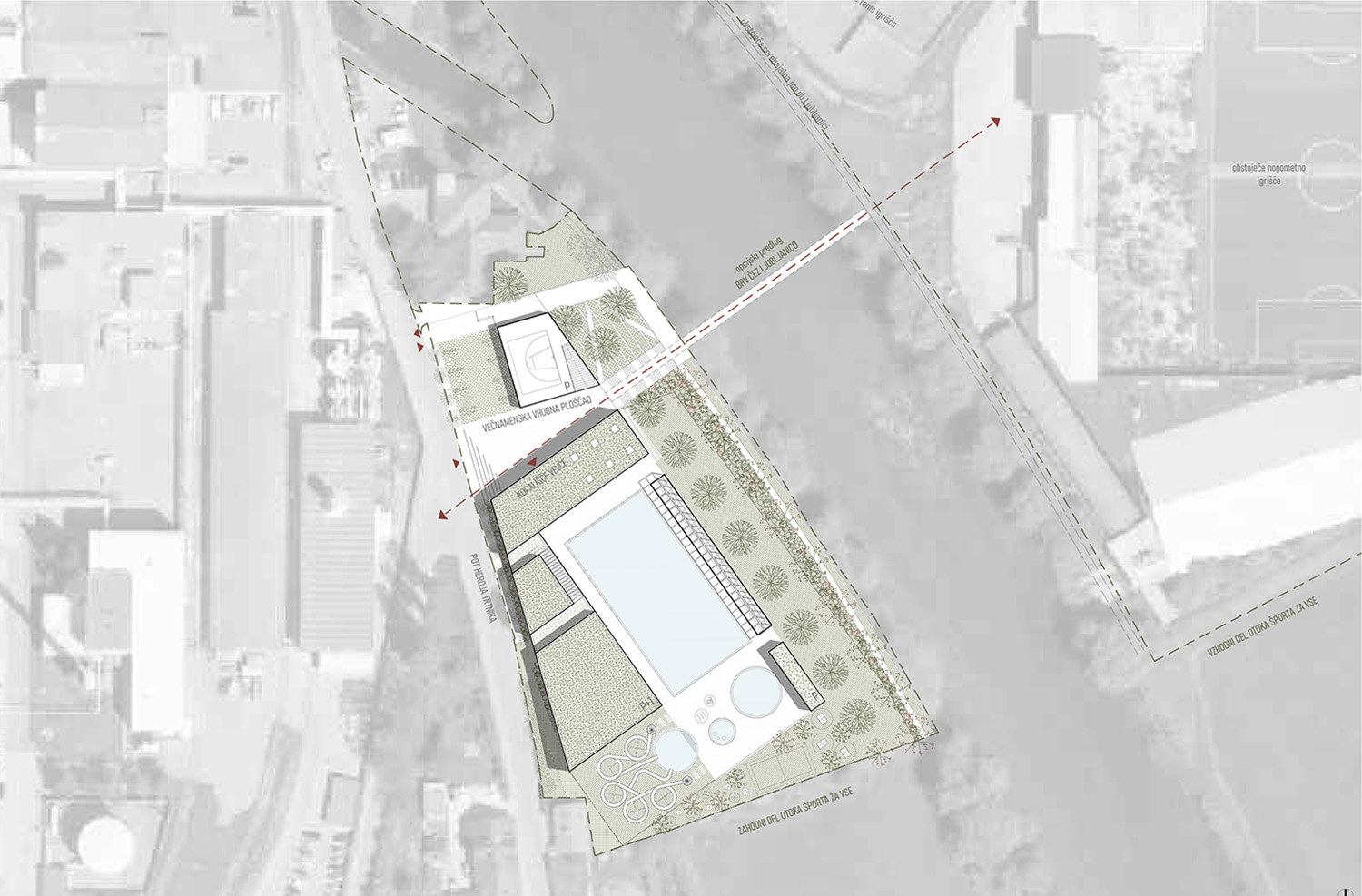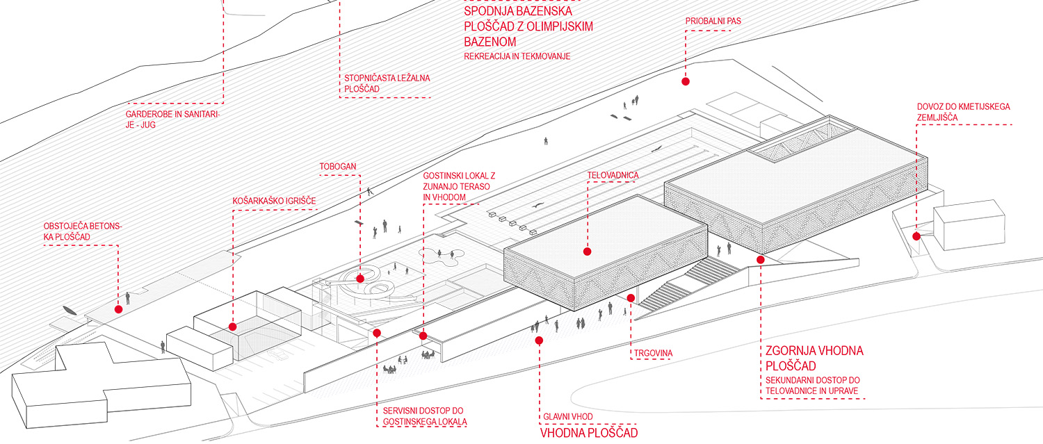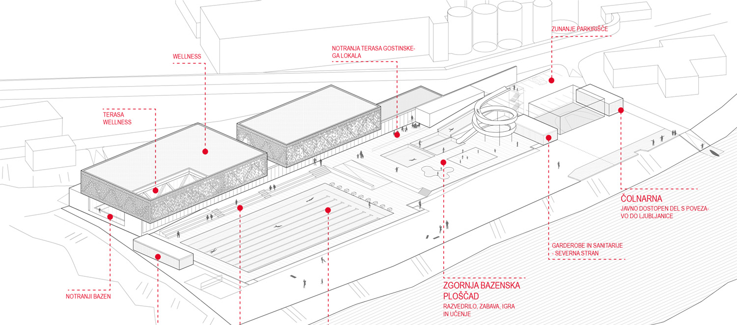 - pridobiti strokovno najprimernejšo urbanistično in arhitekturno rešitev ureditve novega letno-zimskega kopališča Vevče