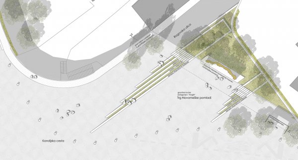 - strokovno najprimernejšo rešitev za oblikovno ter funkcionalno prenovo sledečih osrednjih odprtih javnih površin v mestnem jedru Novega mesta: Glavnega trga, Rozmanove ulice do uvoza v garažno hišo Novi trg, Kastelčeve ulice, Linhartove ulice, spodnjega dela Prešernovega trga med Kastelčevo ulico in Rozmanovo ulico ter kandijskega križišča;