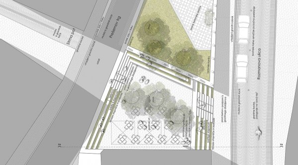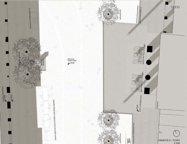 1. stopnja: Urbanistična zasnova območja – osnovna ideja urejanja odprtih javnih površin na obravnavanem območju