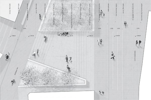 2. stopnja: Podrobnejša arhitekturna in likovna ureditev odprtih javnih površin na obravnavanem območju na podlagi urbanistične rešitve iz 1. stopnje s poudarkom na oblikovanju tlakovanja, urbane opreme, javnih spomenikov, stalnih in začasnih prireditvenih prostorov ter načrtovanju komunalne opreme.