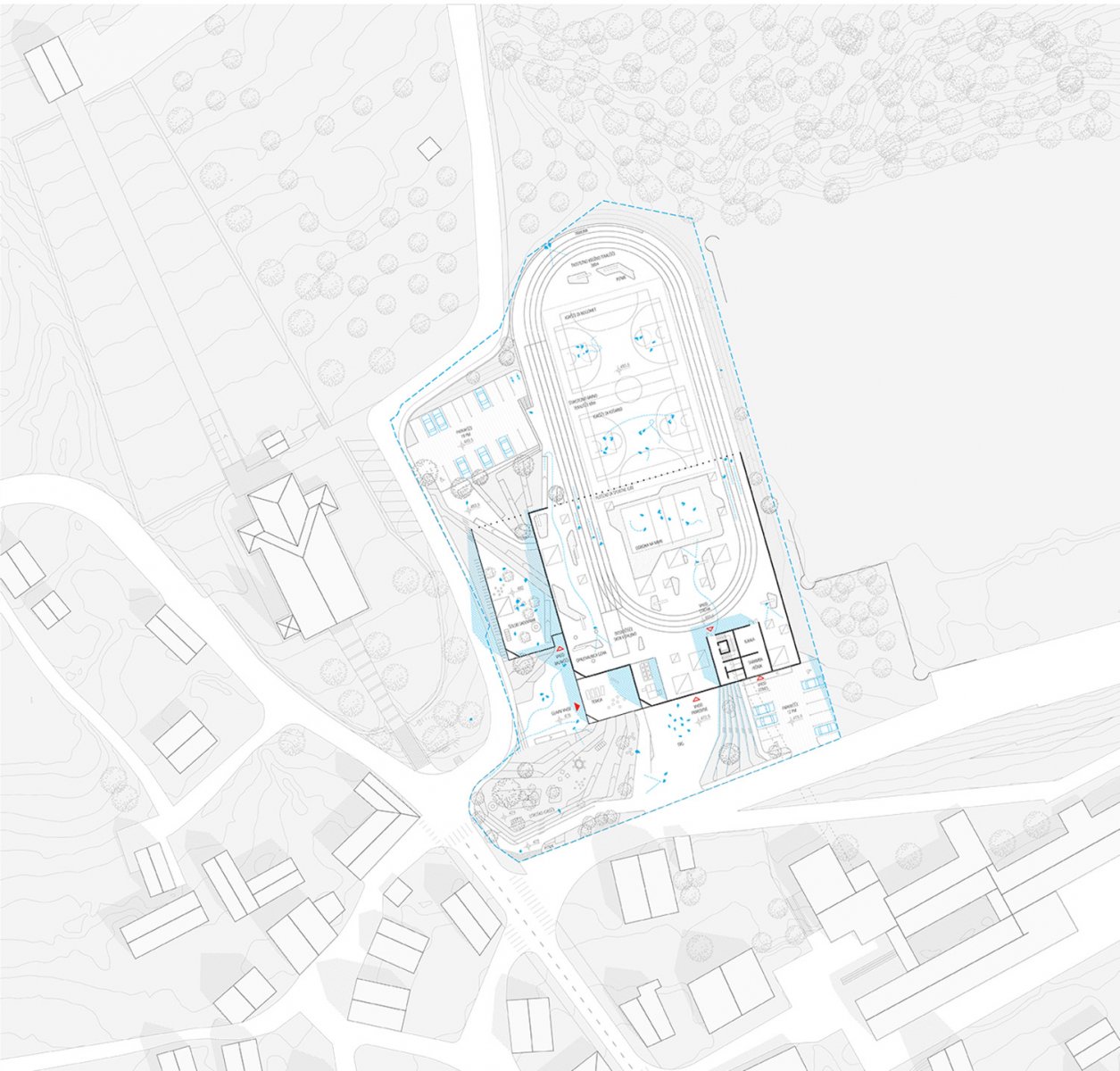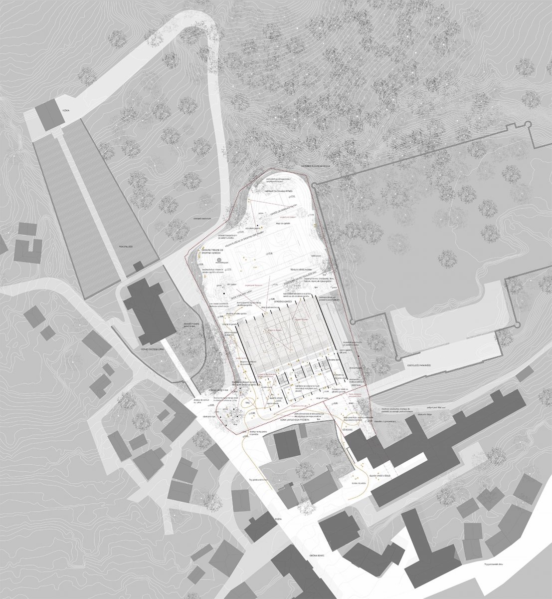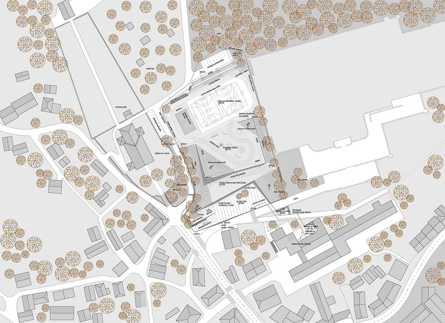 Z javnim natečajem bo izbrana strokovno najprimernejša in najustreznejša urbanistična, arhitekturna in krajinsko – arhitekturna rešitev in v nadaljnjih korakih tudi izdelovalec projektne dokumentacije za novogradnjo športne dvorane. Na obravnavanem območju naročnik načrtuje novogradnjo športnega objekta z vsemi potrebnimi spremljajočimi prostori, povezovalnim hodnikom do osnovne šole in pripadajočo zunanjo ureditvijo, zunanjimi športnimi igrišči, otroškim igriščem in parkirišči.
