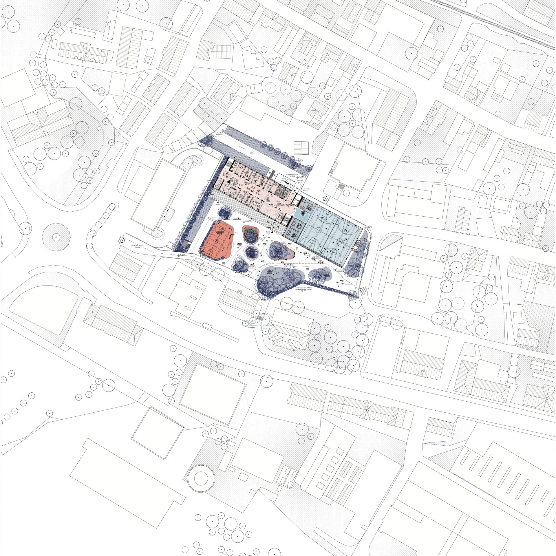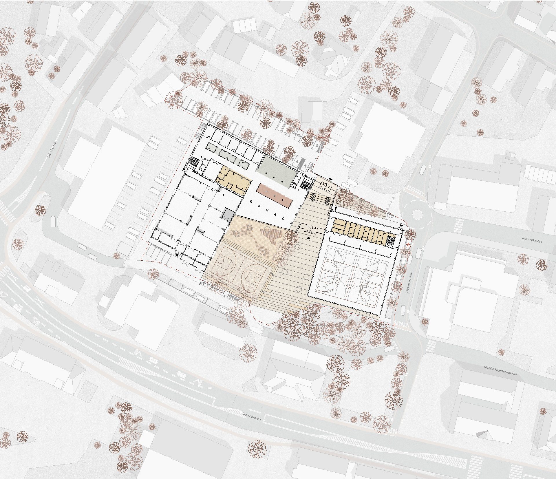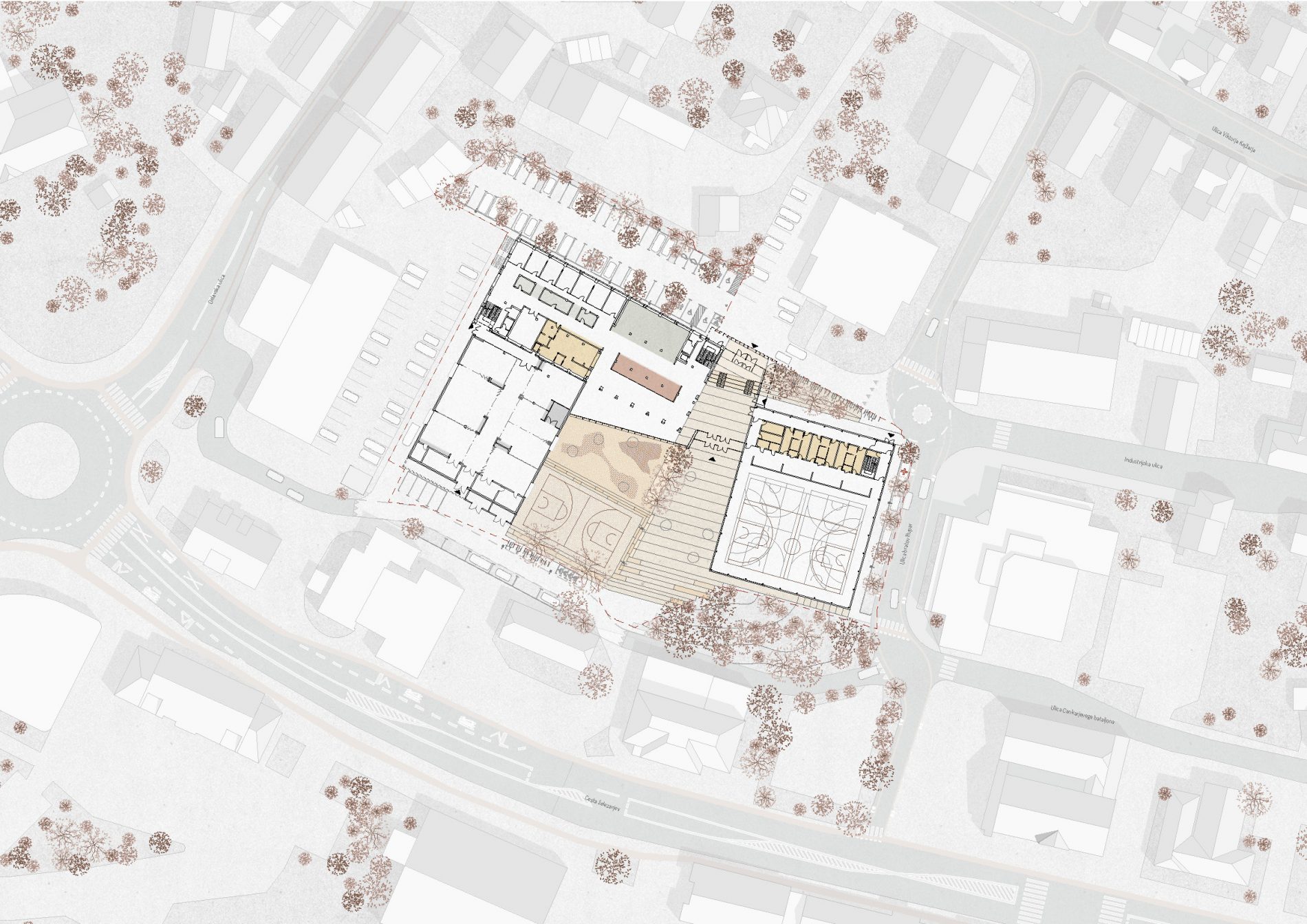 Predmet natečaja je ureditev kompleksa šole, na katerem so obstoječi trije samostojni objekti (šolski objekt, telovadnica in delavnice) s primernimi zunanjimi površinami in parkirišči.