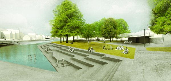Projektni del natečaja zajema celovito ureditev treh med seboj povezanih sklopov: