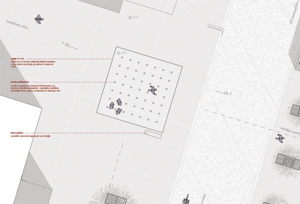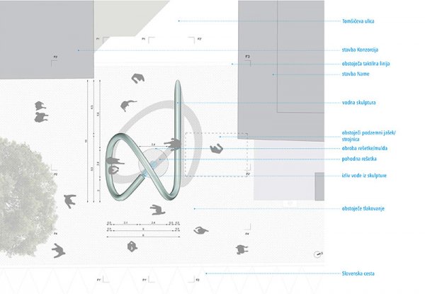 Predmet natečaja je postavitev vodne skulpture v razširjen del Slovenske ceste na severnem delu piazzette pred Konzorcijem. Vodna skulptura se mora s svojo obliko in pojavnostjo ter funkcionalnostjo prilagoditi kontekstu prostora, ki ga ustvarjajo iztek Tomšičeve ulice na Slovensko cesto, mikroambient piazzette pred Konzorcijem z drevoredom in Levstikovimi arkadami, predvidena preureditev pritličja Name, ki bo zapirala severni rob piazzette, in funkcionalna povezava preko Slovenske ceste v Knafljev prehod. Ureditev vodne skulpture se mora uskladiti tudi z novo talno ureditvijo Slovenske ceste.