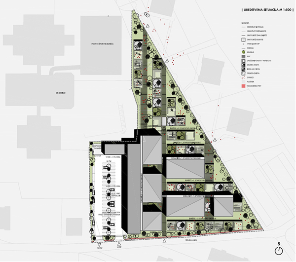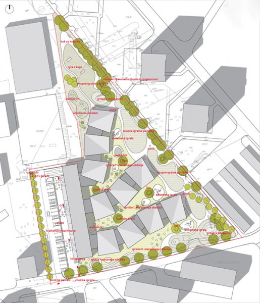Predmet razpisanega natečaja: Predmet natečaja je novogradnja vrtca Mavrica v Občini Brežice. Investitor želi porušiti obstoječi montažni vrtec, v katerem je 13 oddelkov in zgraditi novega z 20 oddelki predšolskih otrok / 12 oddelkov za prvo starostno obdobje, 7 oddelkov za drugo starostno obdobje, 1 razvojni oddelek (predvideva naj se skupno 440 otrok, glede na to, da se bo število oddelkov za posamezno starostno obdobje lahko skozi čas spreminjalo). Za navedeno število otrok naj se predvidi kuhinja in vsa ostala infrastruktura povezana z navedenim številom otrok in temu potrebnega osebja. Predvidijo naj se prostori za upravo vrtca in svetovalno službo. Za parkiranje osebnih vozil staršev in zaposlenih je potrebno predvideti zadostno število parkirnih mest, za potrebe otrok pa ograjeno igrišče. Skupna površina novega vrtca obsega cca 4300m2 bruto etažnih površin. Celotna urbanistična ureditev/natečajno območje obsega 11.986m2. V okviru zunanje ureditve naj natečajniki izdelajo predlog celovite zasnove zunanje ureditve in rabe odprtega prostora ob vrtcu. Objekte novega vrtca je potrebno zasnovati energetsko varčno in stroškovno opravičljivo. Natančne zahteve naročnika so opredeljene v natečajni nalogi, ki je osnova za oblikovanje natečajne rešitve in je del tega razpisnega gradiva.