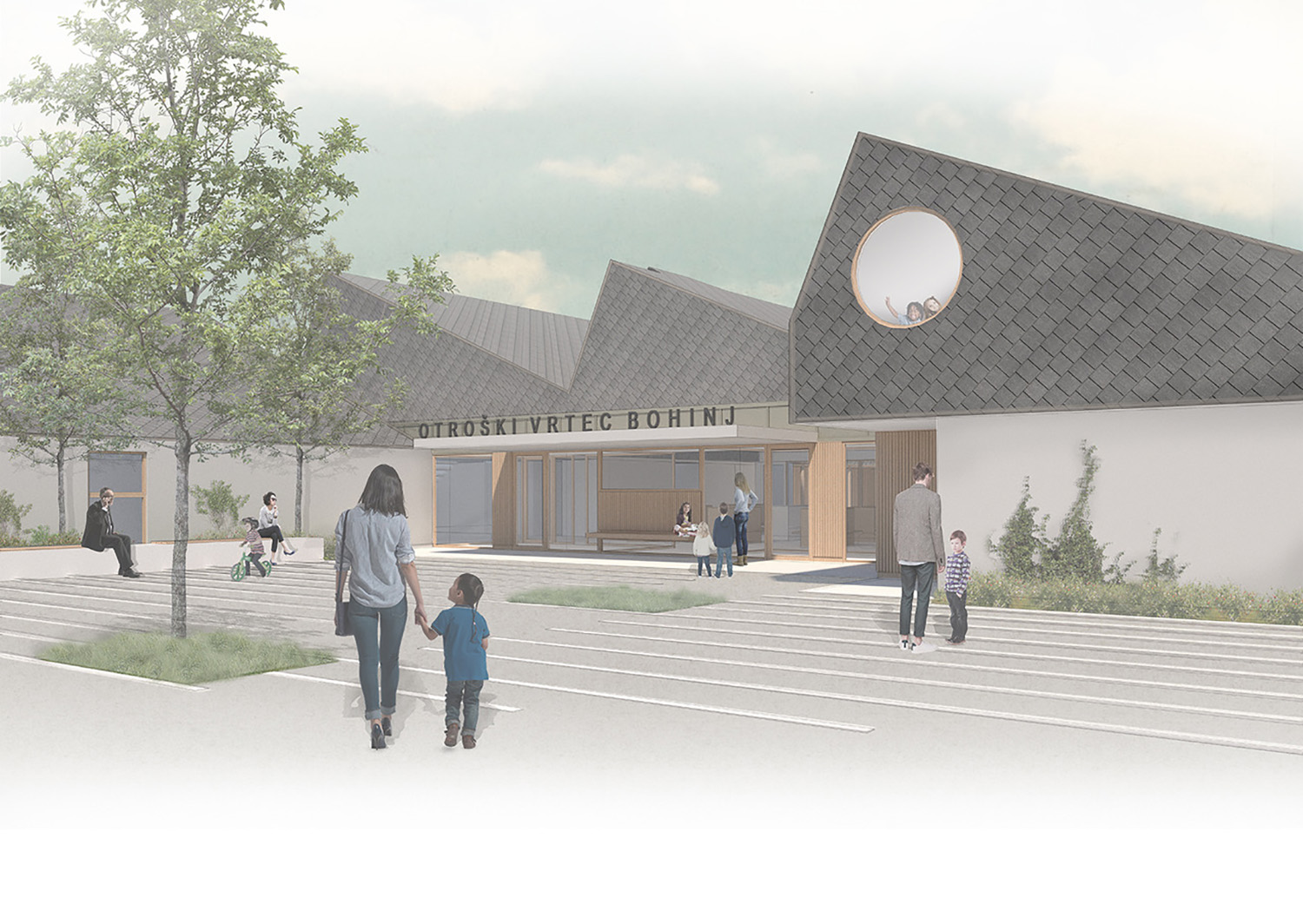 Naročnik Občina Bohinj načrtuje gradnjo novega samostojnega vrtca z 11 oddelki ter vsemi potrebnimi pripadajočimi prostori ter zunanjo ureditvijo vključno z dostopom.